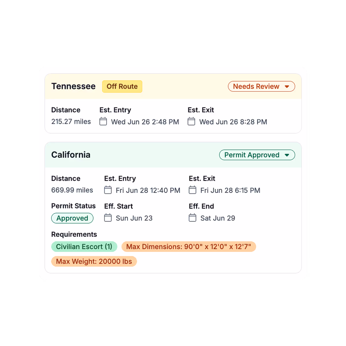 Upload permits by jurisdiction and instantly convert them into digital requirements, extracting waypoints, curfews, and escorts automatically.