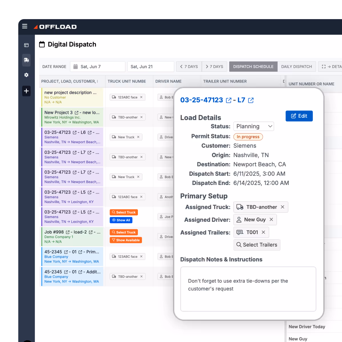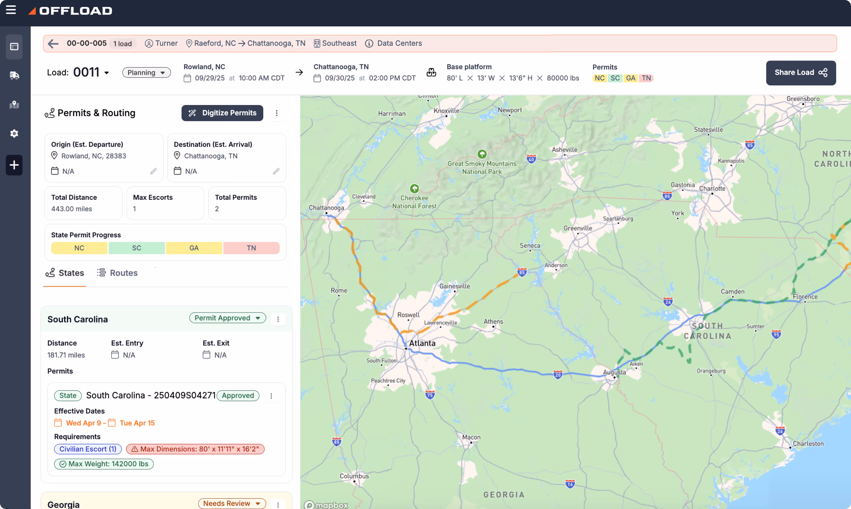 Offload connects permit digitization, route planning, resource management, and dispatch execution in one streamlined system.