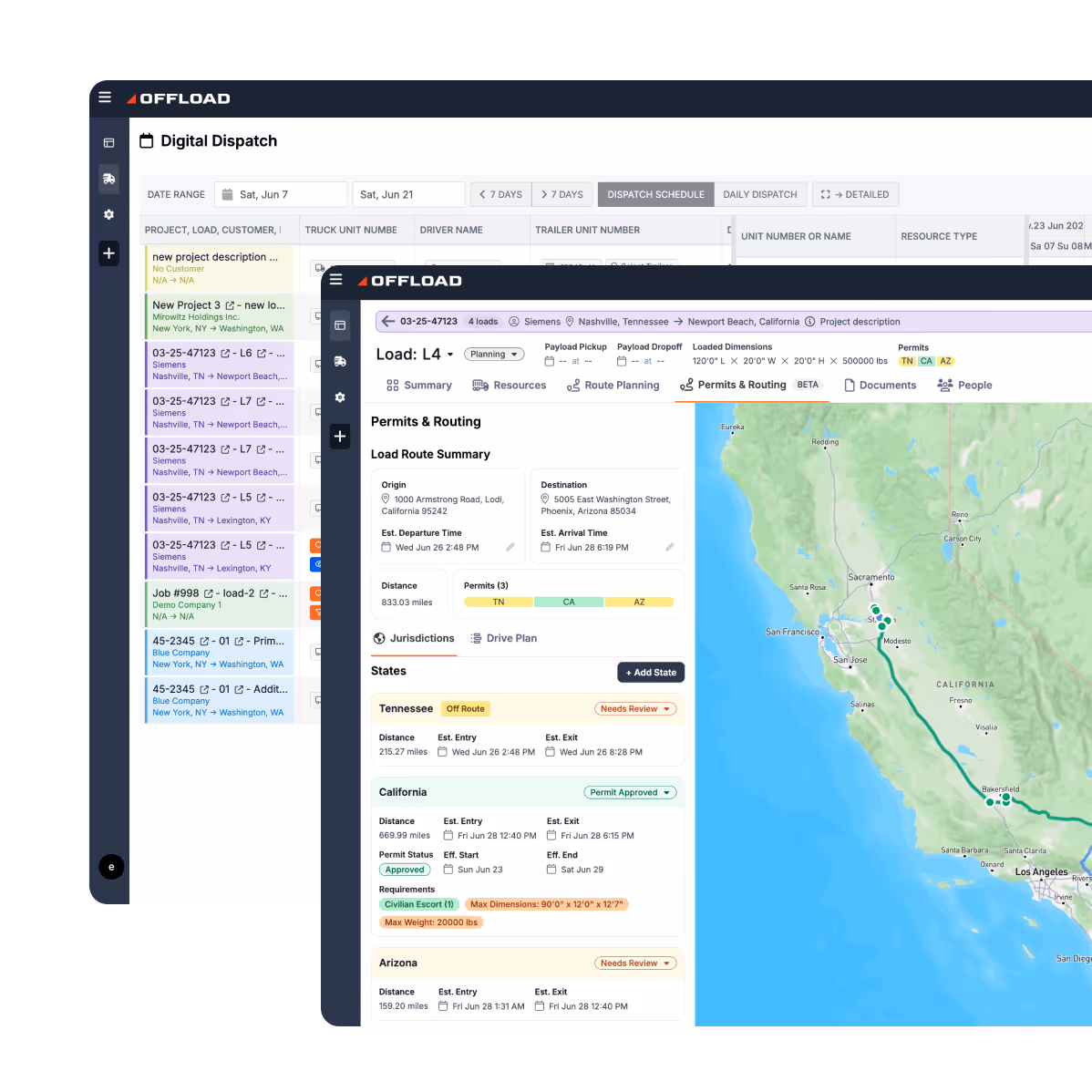 Offload is an AI-powered platform designed for oversized and overweight freight operations. It digitizes OS/OW permits, converts restrictions into navigable routes, and provides dispatchers and drivers with a single source of truth for safe, compliant transport.